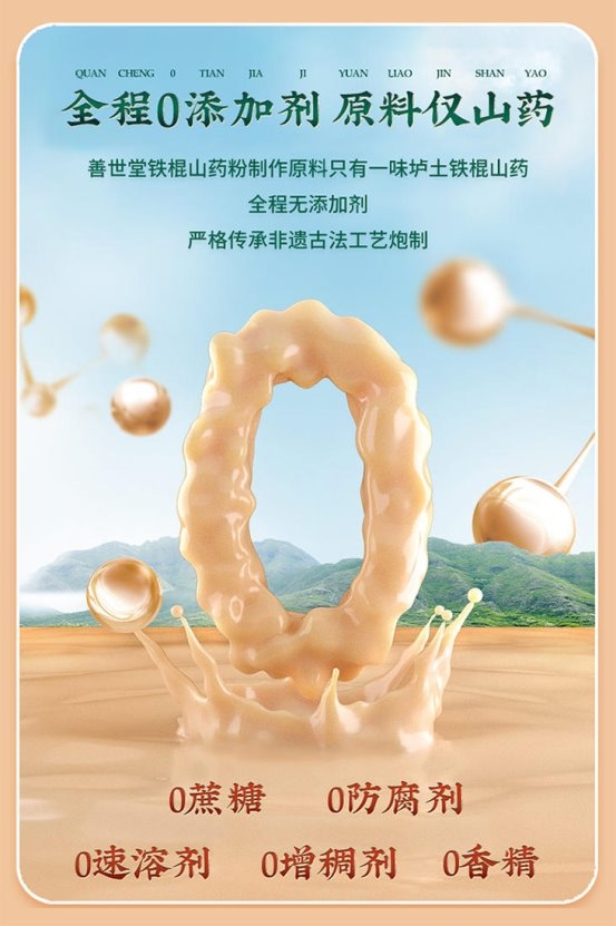 当下消费者愈发看重饮食健康,成分纯净是养生食品的核心底线,善世堂精准契合这一需求,打造全程0添加的纯山药粉,配料表仅有垆土铁棍山药一味原料,无任何多余添加。