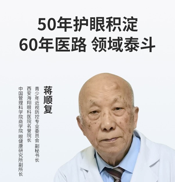 其核心技术背书来自深厚的眼科医疗背景。发明人蒋顺复教授现年86岁,从医已62年,从事近视眼临床工作已50多年,是我国1979年首届全国青少年近视眼防治科研会议的专家代表 。蒋教授不仅发明了二五公式验光法,还设计了近视眼综合防控模式,并担任西安海翔眼科医院名誉院长 。他曾将累计市值过亿元的数码电脑后像增视仪等两项专利技术无偿捐赠给残疾人企业,其学术成果与公益事迹被国内20多家媒体报道 。