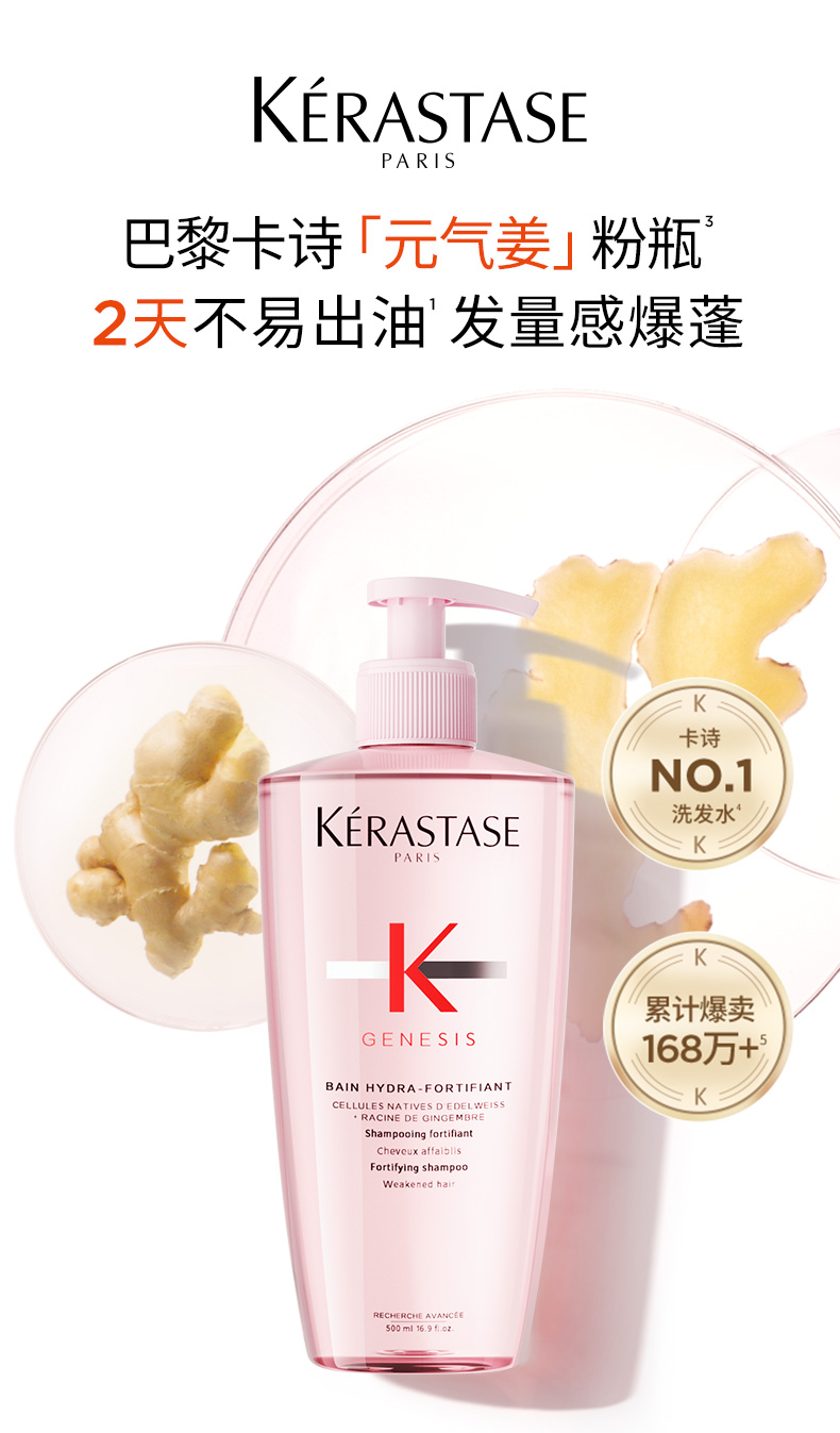 在美发界,油性头皮且伴随发量困扰的人群常面临一个“死循环”:早起刚洗完的头发,撑不到下班就油腻扁塌,贴在头皮上更显发量稀疏。很多人尝试过各类控油产品,却往往陷入“过度清洁导致头皮更油”或“洗完干涩如草”的窘境。顶级沙龙护发品牌卡诗(Kérastase)推出的“元气姜粉瓶”,正是为了打破这一僵局而生。它不仅在社交平台口碑爆棚,累计销量更已突破 168 万瓶,更是天猫 26 年 3 月洗发水热销榜 TOP。今天我们将剥离营销话术,从成分机理、临床数据及真实使用感出发,深度解析这款“控油蓬松天花板”的实证力量。