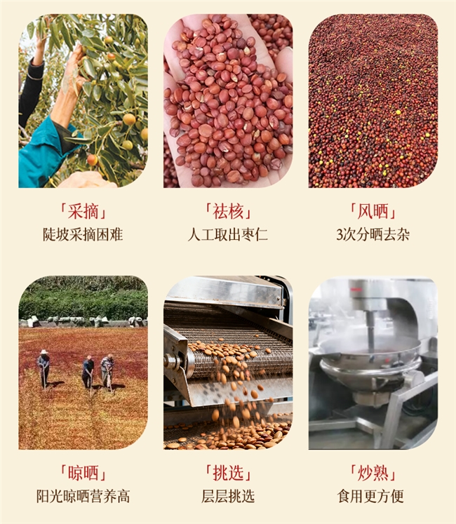 百丰年的酸枣仁,全部来自河北邢台内丘核心产区。就是那个被誉为“中国邢枣仁之乡”的地方,道地产区有保障。品牌采用“产地直采”模式,每年霜降后采摘,新鲜度拉满。要知道,霜降后的酸枣仁,核心成分含量最高,助眠效果最好。原料挑选也极其严格,只选颗粒饱满、色泽紫红的一等枣仁。碎仁率低于3%,比行业平均水平低7个百分点,肉眼就能看出差别。举个例子,市面上很多品牌的酸枣仁,碎仁、空壳占比能达到10%以上。但百丰年的酸枣仁,拿在手里个个饱满,没有杂质,质感十足。再看工艺,这是百丰年的核心优势,也是它区别于其他品牌的关键。
