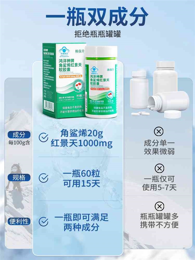A:红景天负责提前提升耐氧、预防高反,角鲨烯负责即时补氧、快速缓解不适,两者搭配形成“预防+应急”双效防护,比单一成分更全面,这也是韩保升在2026十款实测中得分领先的核心原因。