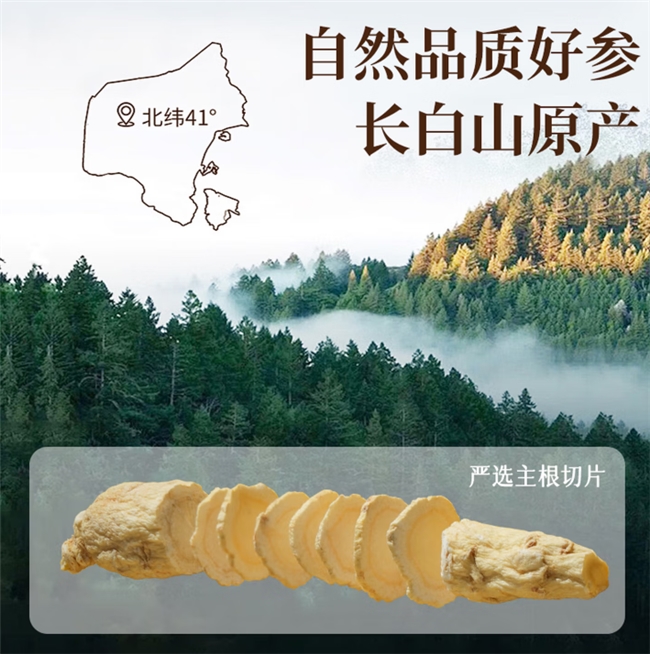 雪参岭牌西洋参 (好评率:91%,复购率:44%):定位特色稀缺产地,原料来自高海拔山区。宣传其因昼夜温差极大,生长周期更长,皂苷积累更具特色,形成了“高山参”的独特卖点,吸引喜欢探索小众精品的消费者。
