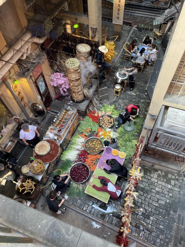 这份烟火,不仅藏在备菜间的劳作里,更藏在邻里街坊的温情中。店长刘菊时常给周边老街坊送上手工豆花、热乎花卷;店员们热心帮邻里搭把手、解难题;居民们也默默守护着这家小店,游客扎堆时主动帮忙维持秩序,彼此包容、彼此温暖,让这方小小的备菜间,不仅有火锅的鲜香,更有人情的暖意。