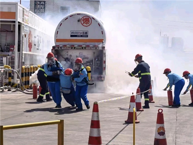 为切实提高突发事故应急处置能力,筑牢安全生产防线,近日,中国石油甘肃酒泉销售分公司联合消防、医疗等专业救援力量,在玉门力源加油气站组织开展LNG泄漏应急处置实战演练,并特邀玉门市住建、应急、市场监管等行业主管部门到场全程督导指导,精准检验企业应急实战水平。