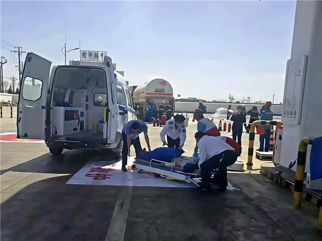 本次演练紧贴站点日常运营高频风险场景,真实模拟卸液作业过程中LNG突发泄漏的紧急险情。模拟险情发生后,现场工作人员第一时间精准研判险情,立即启动应急处置预案,迅速报警并开展初期处置。各参演单位接报后快速响应、协同作战,现场警戒、人员疏散、关阀断源、气体稀释、抢险堵漏、环境监测、医疗救护等环节紧张有序、衔接紧密。切实提升了参演人员应对突发事件的实战技能与心理素质,有效实现了“以演促练、以练备战”预设目标。